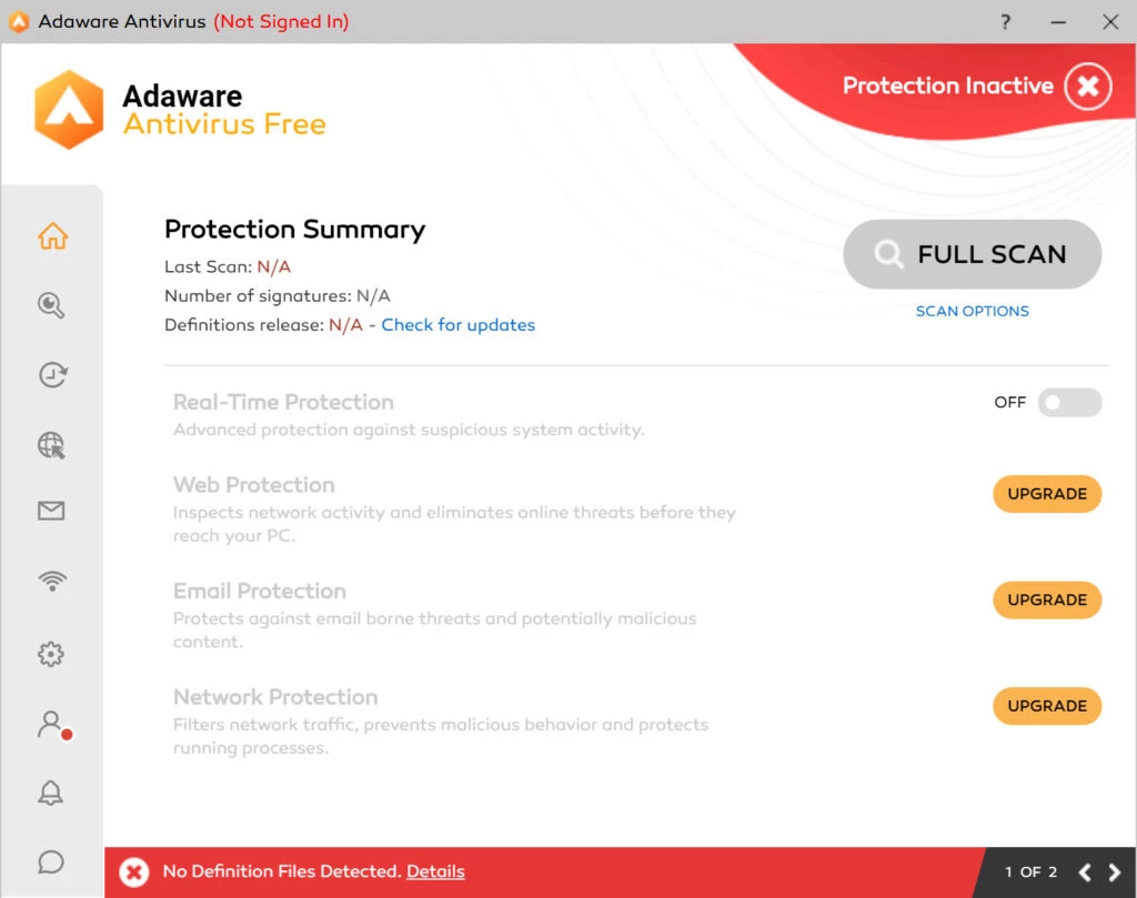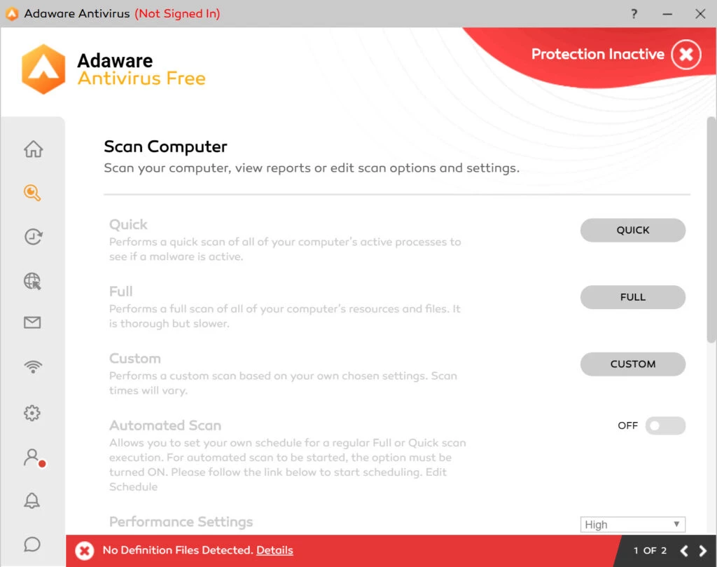 Adaware ofrece la mejor integración con los sistemas operativos Windows 10 y Windows 11 y ofrece 3 opciones de escaneo principales, que incluyen Rápido, Completo y Personalizado.